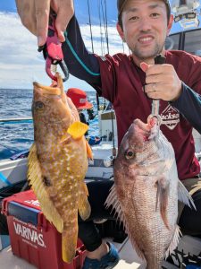 タイラバ釣果 9月15日 釣果 今日は台風の影響でかなり海況は悪かったですが、カツオ&コシナガマグロキャスティング、根魚狙いでの出船でした。 まだまだ暑くウネリもあり苦労しましたが、頑張って皆さんお土産確保はして頂けました! カツオ&コシナガマグロはまだまだ釣れますね! 関連釣果投稿 6月22日 SLJ 船長の癒し