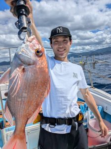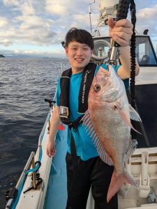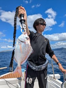 台風の影響がまだ残る状況で、お客様を船酔いさせてはいけない…と影を選んでの限定的な釣りになりましたが、なんとか誰も酔わずにしっかり釣果を上げて頂けて良かったです。