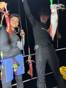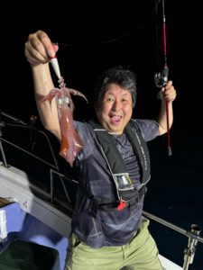 途中2mを超えるカジキに仕掛けブチ切られたりイルカに挨拶されたりとトラブルも多くヒヤヒヤしましたが、釣果に関しては皆さんノンストレスだったのではないでしょうか?😁🦑